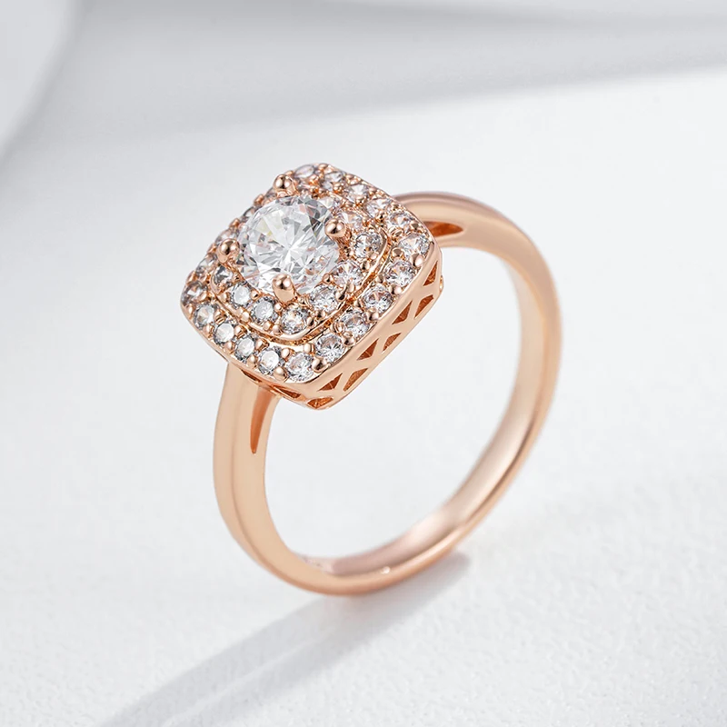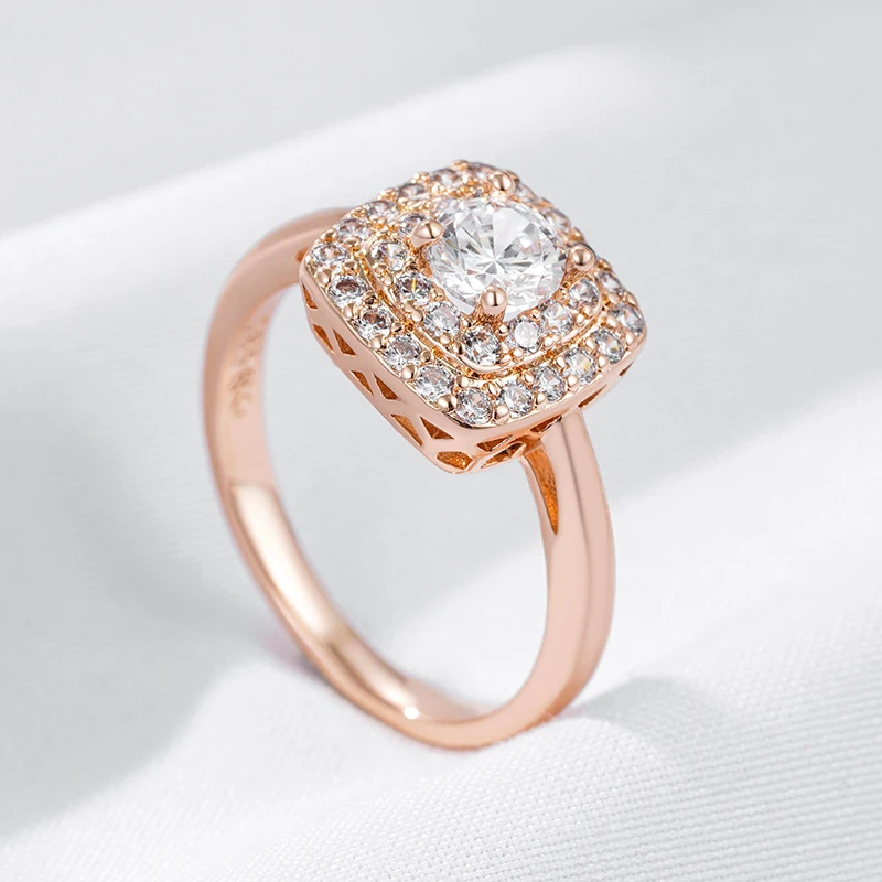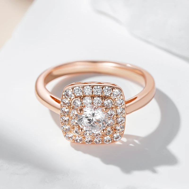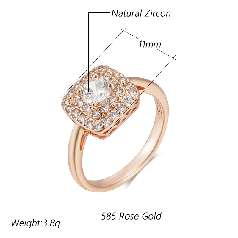 Kinel Hot 585 Rose Gold Color Square Bride Wedding Ring For Women Trend Shiny Natural Zircon Accessories Daily Fine Jewelry Gift