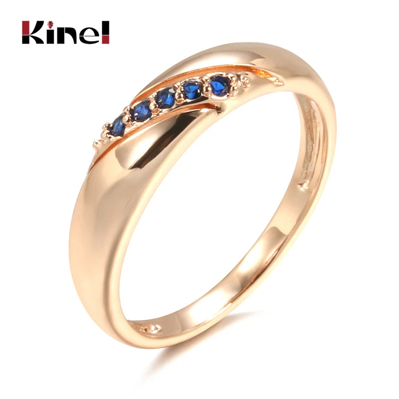 Kinel Luxury Vintage Blue Natural Zircon Ring for Women 585 Rose Gold Ethnic Bride Wedding Ring Stylish Simplicity Jewelry 2021